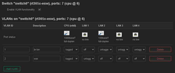 LuCI Web interface (Network ⇒ Switch):