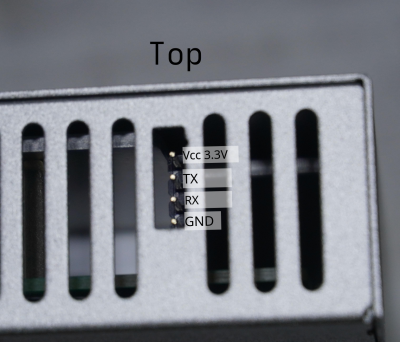 Serial very simple on this switch. On the right side, between the ventilation slits. The serial header can be connected to without the need for a teardown with a standard 2.54mm header. Pins are, from top to bottom: